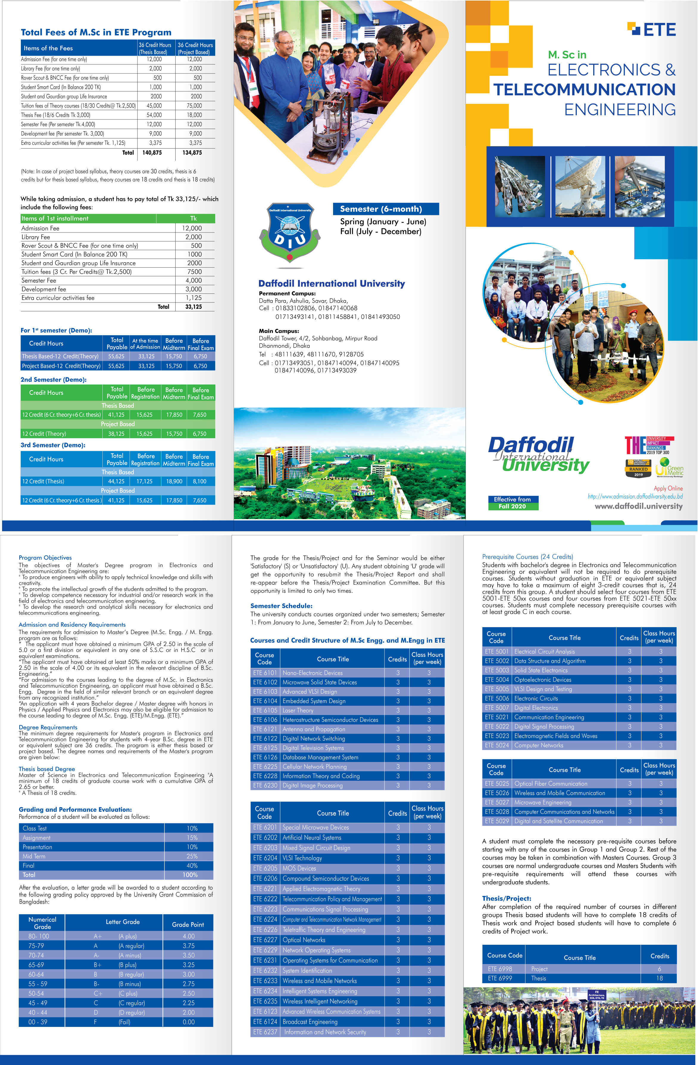 M.Sc. in Electronics and Telecommunication Engineering (ETE) (Thesis/Project)
